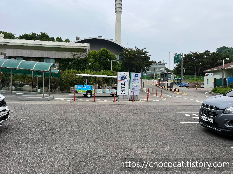 밑에 주차를 하고 맹꽁이 열차를 타고 올라가야 하지만