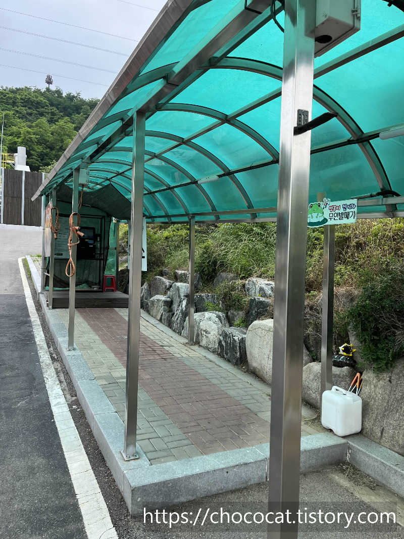 주차장 바로 옆에 맹꽁이 전기차 발매기가 있습니다.